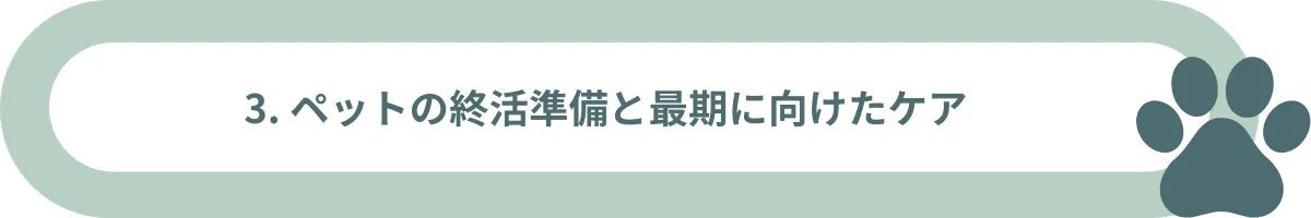 ペットの最期を迎える準備として、心の準備や具体的な行動(ペット葬儀、安楽死の選択肢、遺品整理)を早期に考えることの大切さをお伝えいたします。
