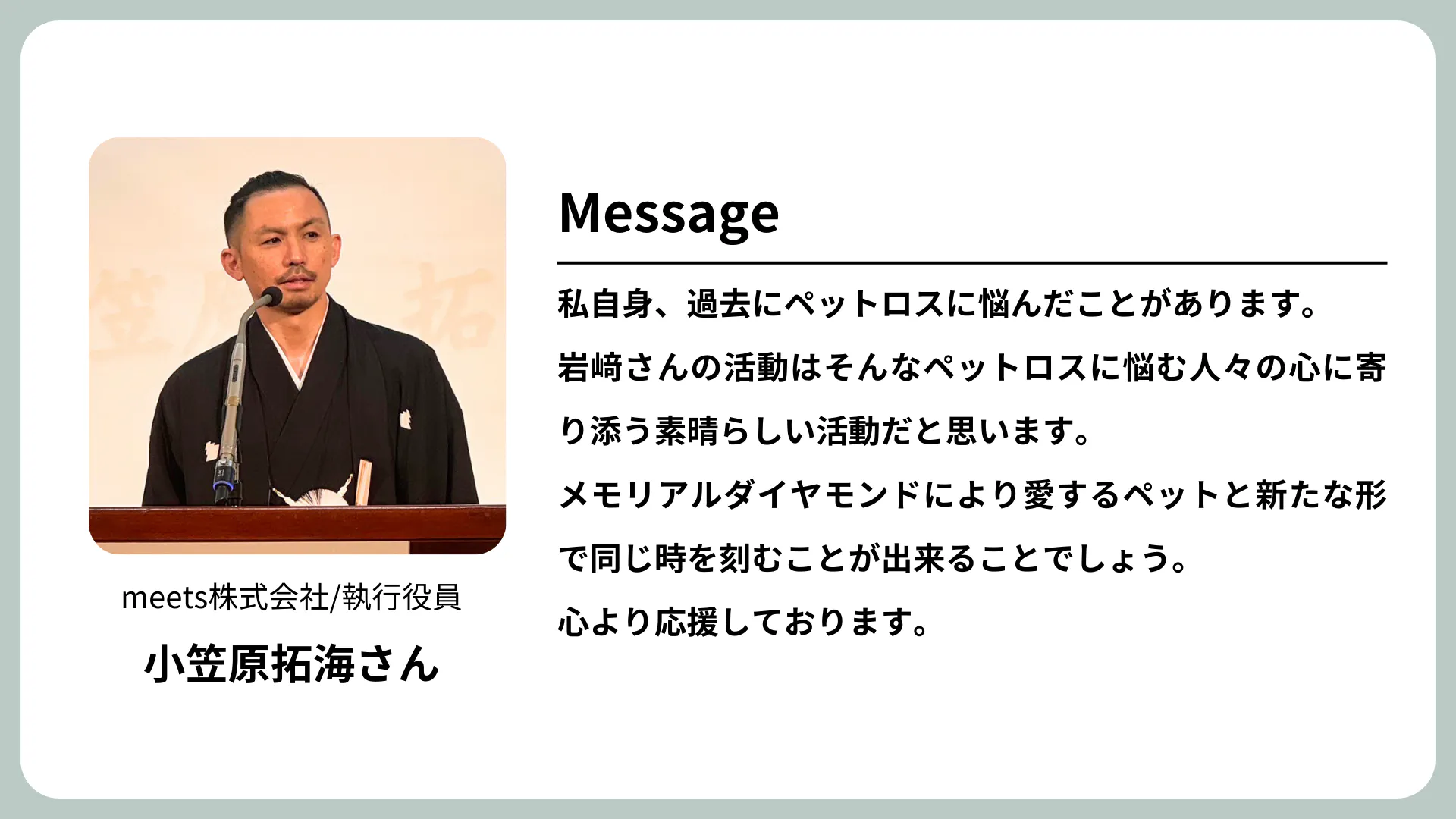 私自身が、このような経験をしたからこそ、同じ境遇の方が、大切なペットとのお別れを受け入れ、感情的な困難を乗り越えられるようなサポートをしていきたいと考えております。