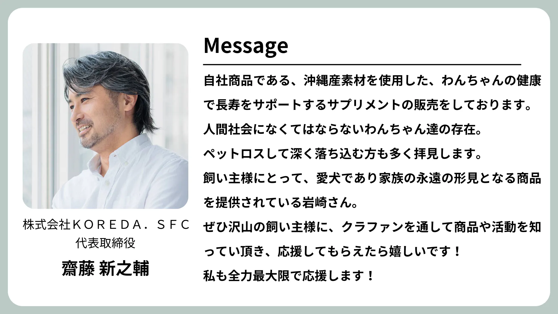 とてもシンプルな活動ではございますが、ペットを飼われている方々やこれから飼おうとされている方々にとって、必ず必要になる活動になりますので、クラウドファンディングを通して応援いただけますと幸いです。