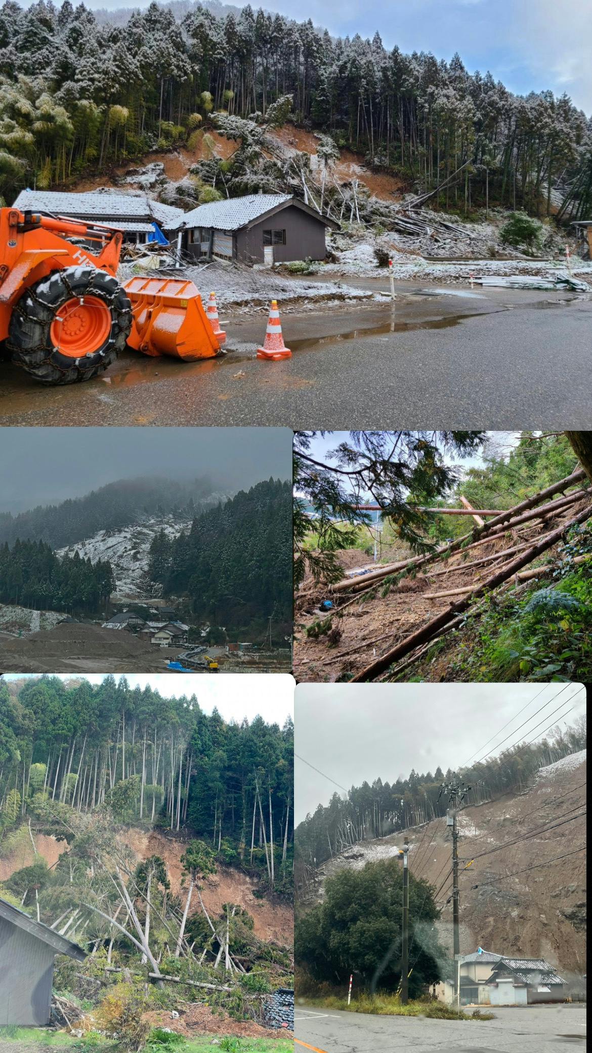 先週能登の実家から帰る際に撮ったあらゆる箇所で発生している出し崩れの写真です。昨年1月に能登半島地震が発生してから、1年を迎えました。震災からの復日が進まない中、9月には能登半島豪雨が追い打ちをかけ、被災地の状況は今なお深刻であり昨年12月10日時点で、輪島市では14カ所の避難所に290人が身を寄せたままで年末年始を避難所で過ごした住民の方も多くいます。「とにかく人手が足りない」「このまま降雪期に入ればさらに事態が悪化する」という切実な声が上がる中、被災地では長期化する災害ボランティア不足への対応が急務となっています。1月の地震による地盤の緩みや護岸の崩壊が残る中で9月の記録的豪雨が輪島市、珠洲市、能登町を中心に複合的な被害をもたらしました。土砂流出箇所は輪島市と珠洲市の一部で約1900カ所に及び、地震起因の約2200カ所に迫る勢いで、地震を耐え抜いた家屋が再び水や土砂に襲われ、さらには震災被災者のために建てられた仮設住宅でも浸水被害があり、ようやく生活再建のめどが立った矢先に再度の災害が起きたことになりました。全壊・半壊とまではいかなくとも、泥出しやがれきの除去、清掃など、専門的でない作業が必要な家屋は多いです。しかし行政は人命救助や避難所運営、ライフライン復旧など優先度の高い活動の対応に追われ、すべてをカバーできない。被災者自身で対処するのは到底困難で、そのため災害ボランティアが本来欠かせない状況ですが、これからの積雪などの影響からもボランティア不足は続いていくと見込まれています。移動中の災難や、2次災書での被害も可能性としては考えられる中、安易に人に呼びかける事に抵抗がありますが早急に必要とされる所には、活用するsnsでボランティアの呼びかけもし、必要とされている現場へ多くの手が差し伸べられる事を願います。