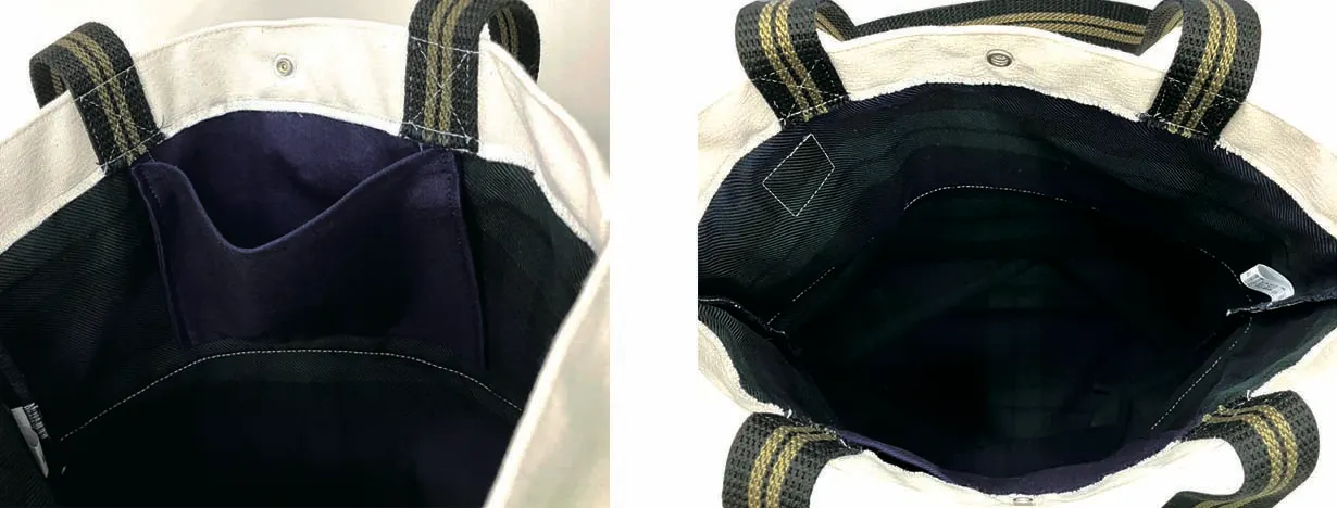 内側全体にチェック生地を縫い込み、より丈夫で汚れも目立ちにくくしました。