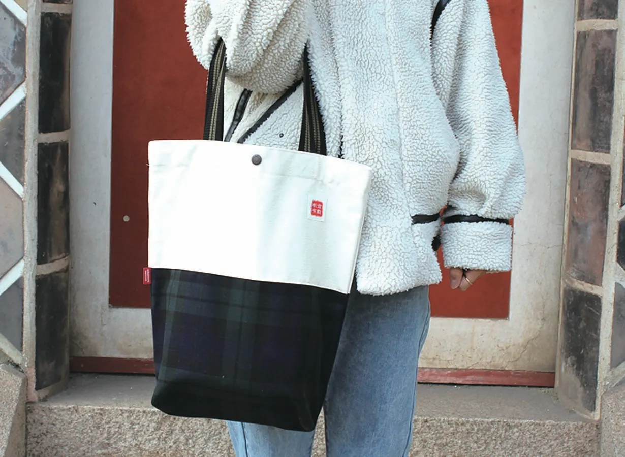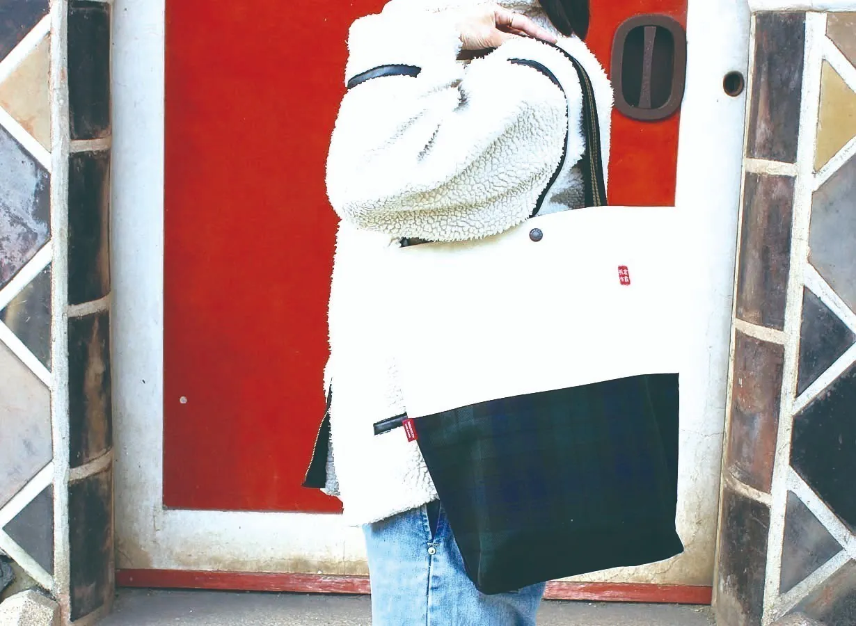 使用しているグリーンのタータンチェックは帆布の少し