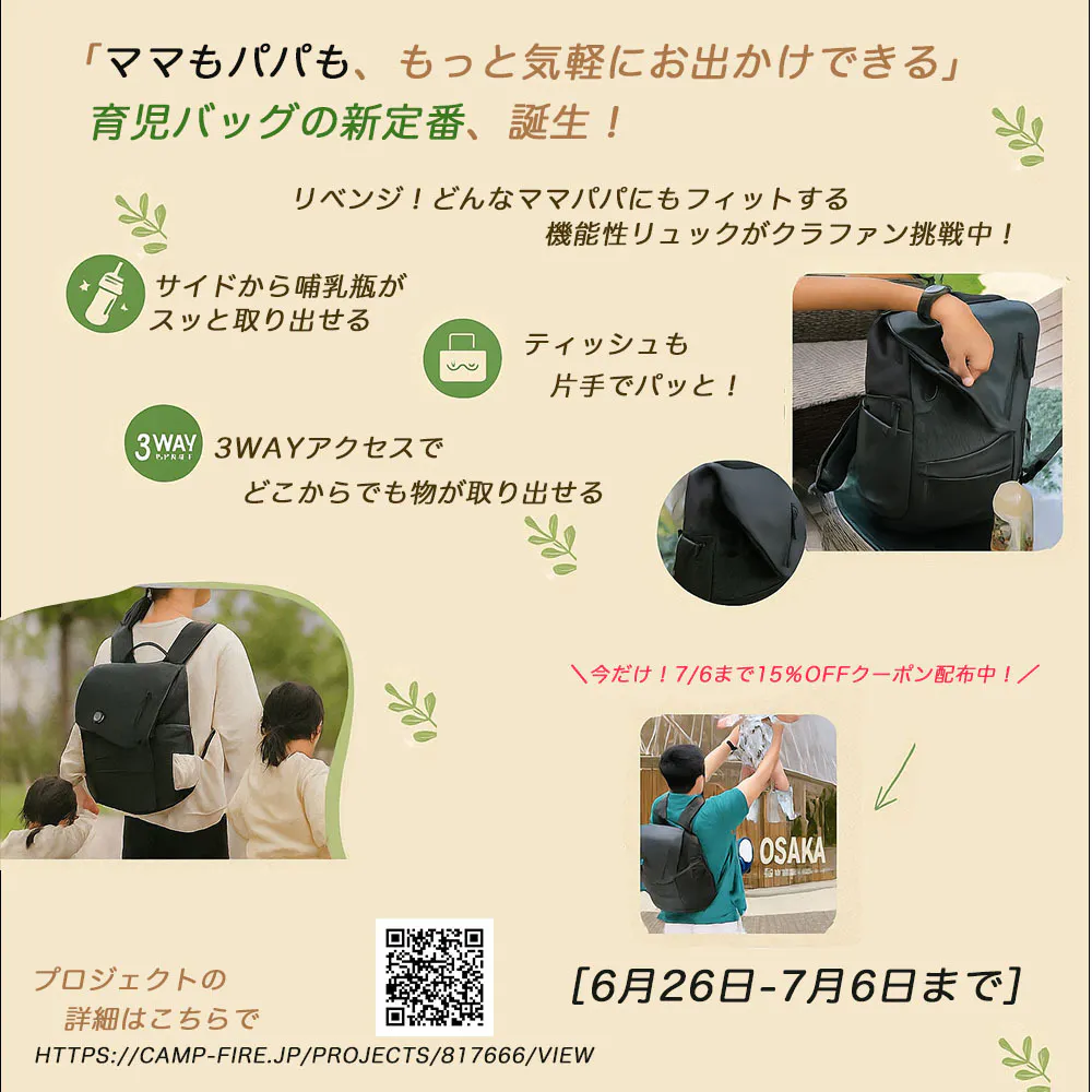 #育児応援 #マザーズバッグ #パパママ兼用 #クラウドファンディング挑戦中 #クーポン配布中 #育児がラクになる
