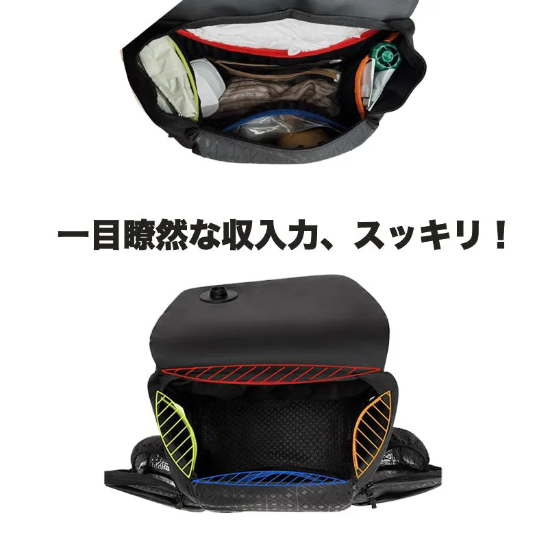 各コンパートメントはカラフルに色分けされ、収納物を一目で識別できます。