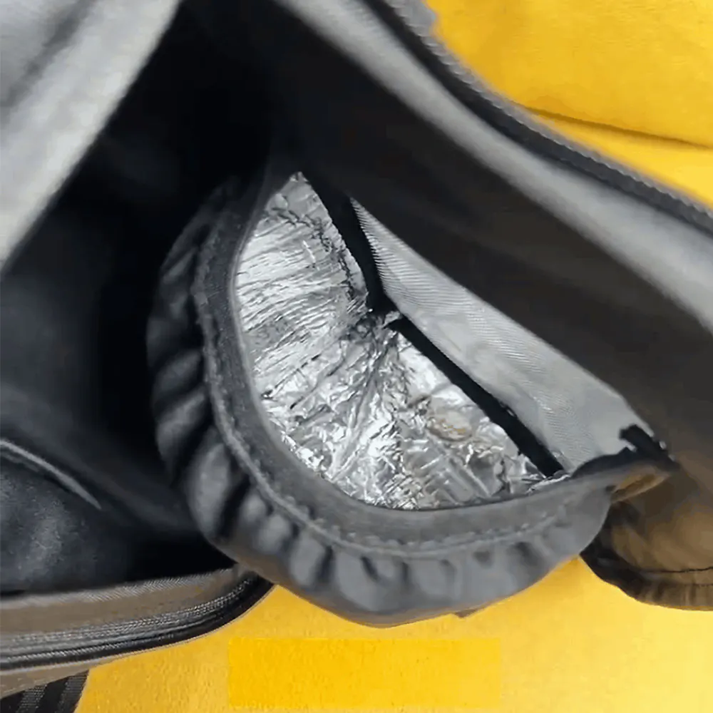 保温ポーチを特に持ち歩く必要がなく、リュック1つでOK!しかも時には背負ったままで、サイドファスナーで取り出す可能です。