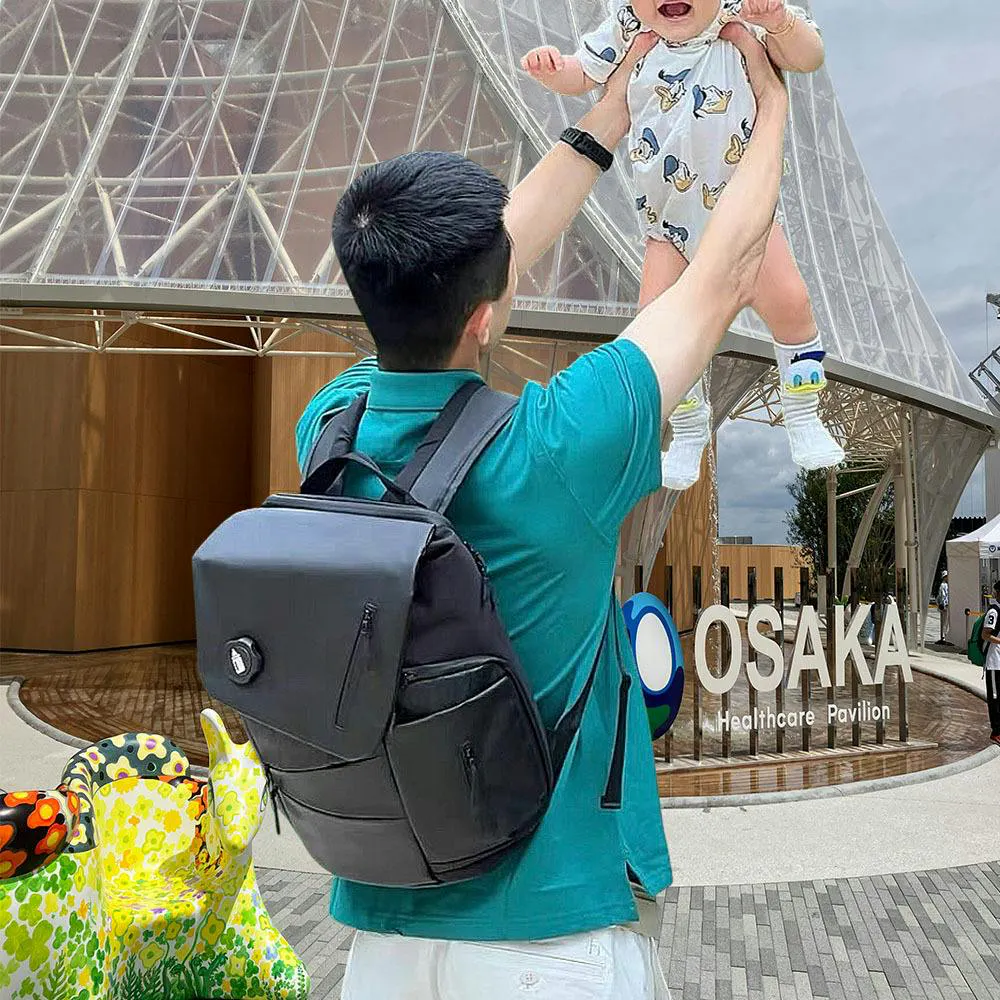 A:シンプルでスタイリッシュなデザインを採用しており、パパも気軽に持ち歩けるよう、おむつ替えや授乳アイテムを効率よく収納できるポケット構造。育児はパパも活躍する時代で、パパのお出かけもさらに楽しく便利になります!