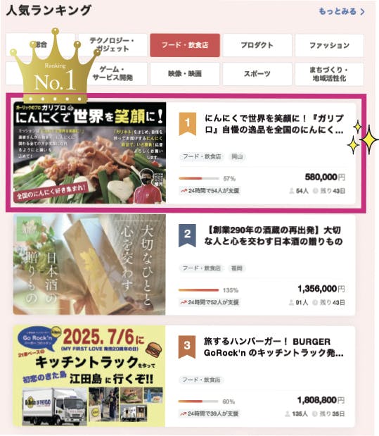 ドキドキで始まったクラファン初日、人気ランキングのフード・飲食店部門でまさかの1位に!