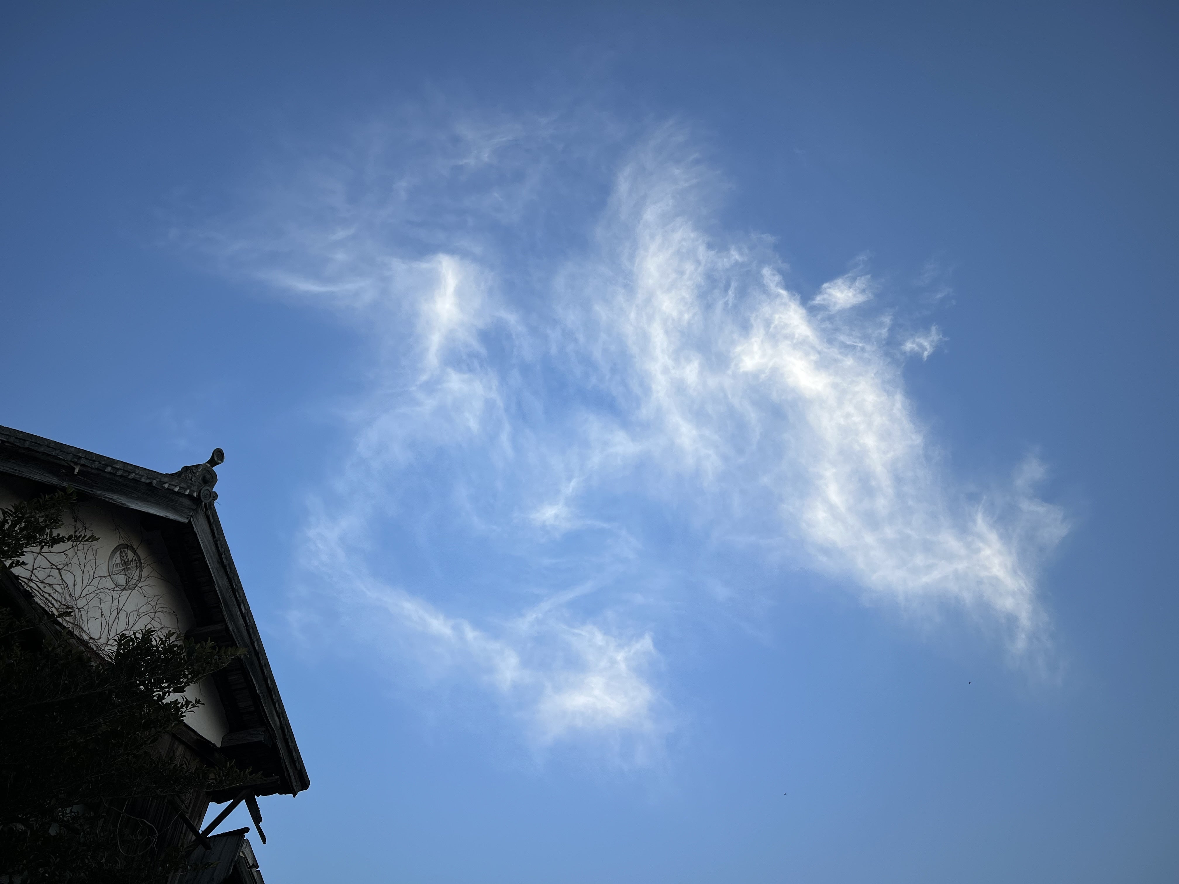 のこり32日。昨日の夕空、快晴の空の一部に見ようによっては龍に見える雲が、古民家の上に現れました。見ようによっては龍。私は、毎日空を見て雲を観察するのが好きです。龍雲・鳳凰雲・彩雲と、様々な雲を見つけては、見えない力(エネルギー)を感じています。季節の移ろいも教えてくれますよ。不思議なことに、不安なときやこころ穏やかでないときでも、いつも優しく話しかけてくれているような、見守ってくれているような気分になります。そして大丈夫だよ。と答えをくれているようにも感じます。そういえば、子供の頃から空を観ては自己完結していたなぁ…中学生の頃に、キツネの嫁入りと言われる雨が降っているんだけれど、日が差すお天気の空を観て、あの雲のうえには雷さまが必ず居ると思っていました。まぁ、ドリフの影響大ですね(笑)農園には、様々な自然エネルギーが飛び交っています。森羅万象、皆さまのそばにおられるエネルギーを感じてみてくださいね。ちなみに、妖精たちもいつも飛び交っていますよ。私の感覚では、寒い時期は苦手のように感じますので、そろそろ妖精たちの動きも活発になってきそうですね!きっと昔の人々は、自然との対話を楽しんでこころ豊かに過ごしていたのでしょうね。本日も、より良き1日をお過ごしくださいませ。