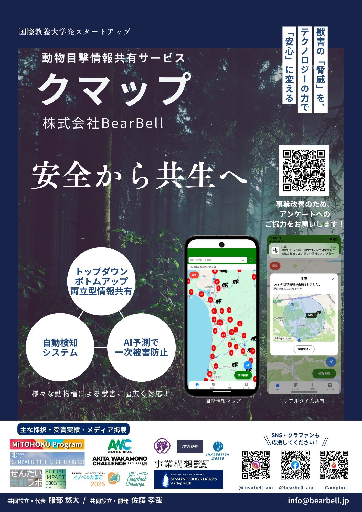 私たちBearBellは、「クマップ」を一日も早く皆様の手元に届け、安心できる日常を取り戻すために全力を尽くしてまいります。皆様の温かいご支援を、どうぞよろしくお願いいたします。