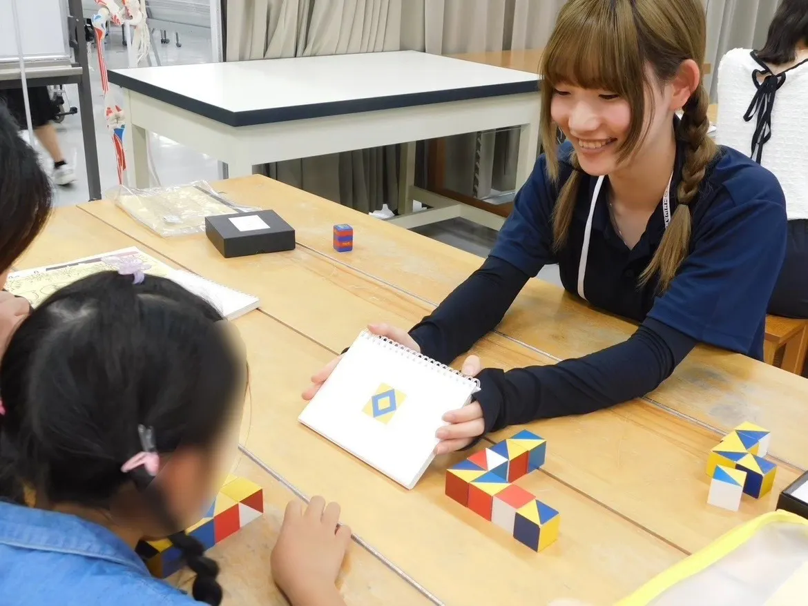 片麻痺疑似体験として車椅子体験,片手で折鶴体験、コース立方体テスト、簡単体操など