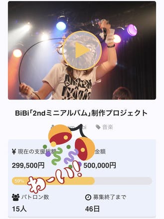 有難いことに本日もご支援頂きまして、達成率が59%のパトロンさんが15名様にグレードアップしました!!!!