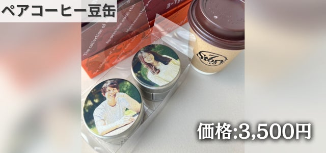 お二人の写真をラベルにした、オーダーメイドの高級コーヒー缶です。