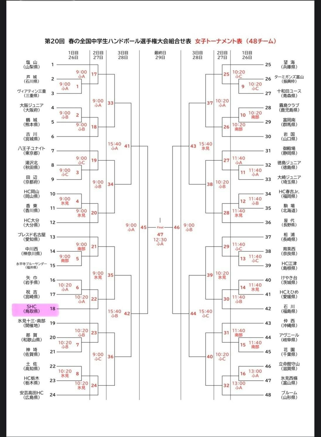 先日、組み合わせ抽選会が行われ、試合日程が決まりました。