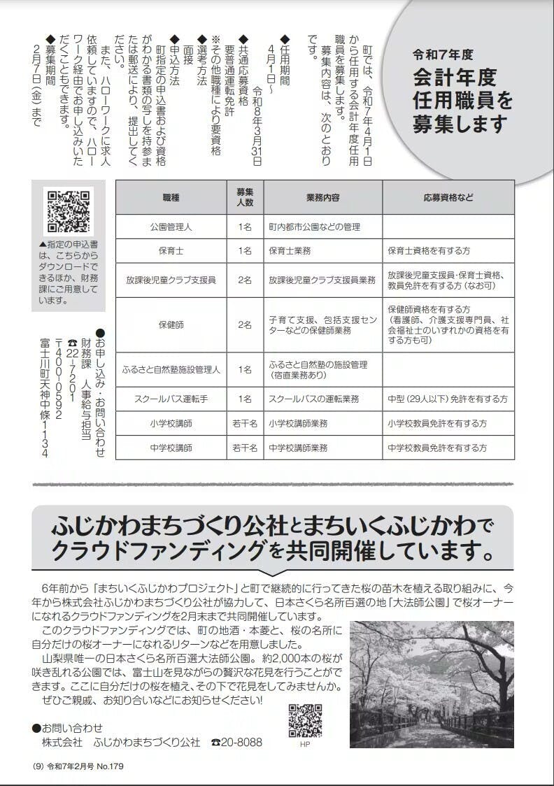 2026/02/06 07:00まちいくふじかわ発起人代表の深澤です。町の広報誌「広報ふじかわ」令和7年2月号にクラファンを取り上げていただきました。(広報誌は町のHPで見られます)思えば7年前から取り組み、今年で8回目。今年からは「ふじかわまちづくり公社」と協力してこの取り組みを行っております。(このプロジェクトも公社のIDにて行っております)大法師公園は、山梨県唯一の桜の名所百選です。富士山と桜でカンパイ!しましょう! もっと見る