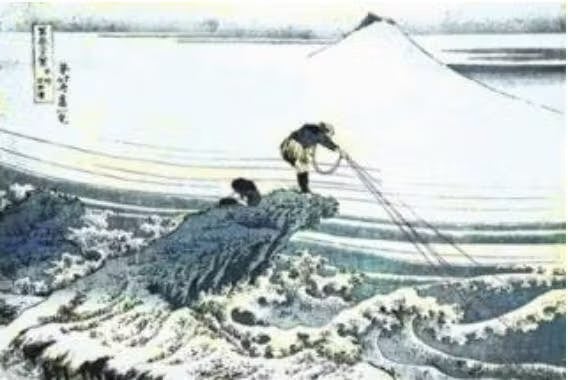 葛飾北斎がさまざまな地域から描いた富士山。その富嶽三十六景に描かれているのが旧鰍沢町です。禹之瀬(うのせ)と呼ばれる、両サイドの山が競り立ち、急流だった場所から見る富士山だと言われています。また有名な富嶽三十六景以前にも、北斎漫画「甲斐鰍沢」の題名で描かれています。稀代のクリエイター葛飾北斎を魅了した町。葛飾北斎が生きた時代はちょうど富士川舟運で旧鰍沢町が賑わった頃。その頃の鰍沢には多くの酒蔵があったことでしょう。もしかしたら、本菱で一杯...の後で描かれた画かもしれませんね。
