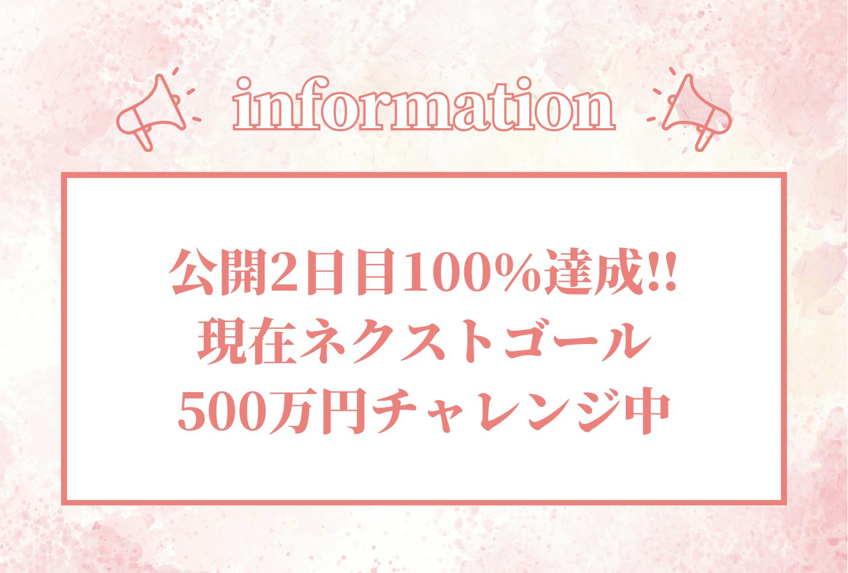 ご支援いただいた皆様、誠にありがとうございました!さらなる成功を目指しネクストゴールにチャレンジします。引き続きの応援をよろしくお願い申し上げます。