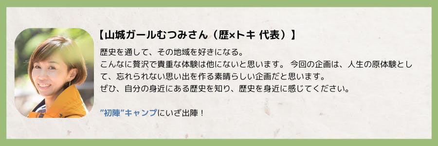 そして、このスタディーキャンプが子供・若者たちが地域を知り、郷土愛を育むスタートの機会となることから『”初陣”キャンプ』と名付け、仲間たちと力を合わせてチャレンジをしていく「原体験」の場としてレガシーにしていきます!
