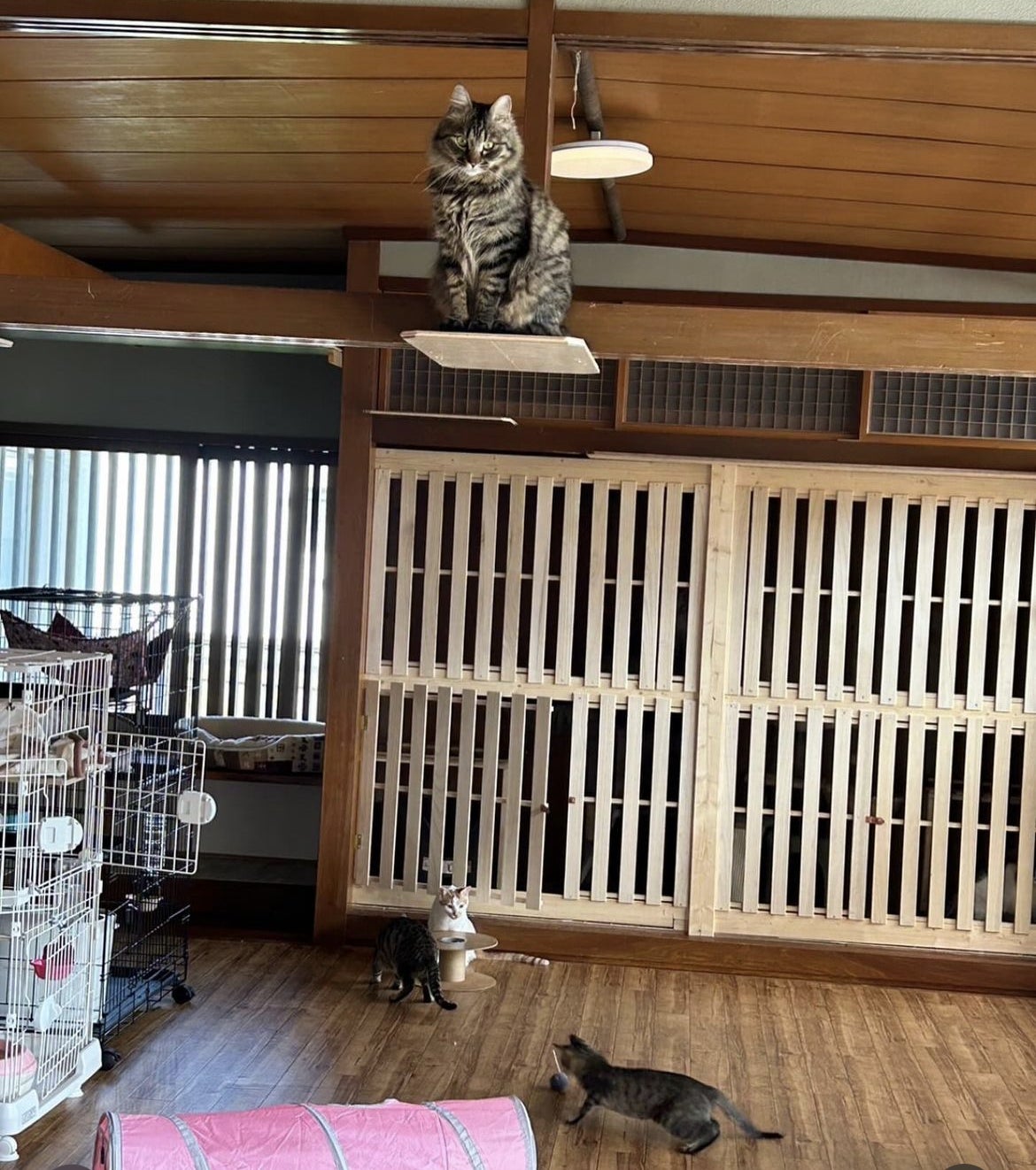 その他各所の脱走防止対策、キャットタワーの作製、一つの部屋を二部屋として使えるように仕切るなど、様々なことを行いました。