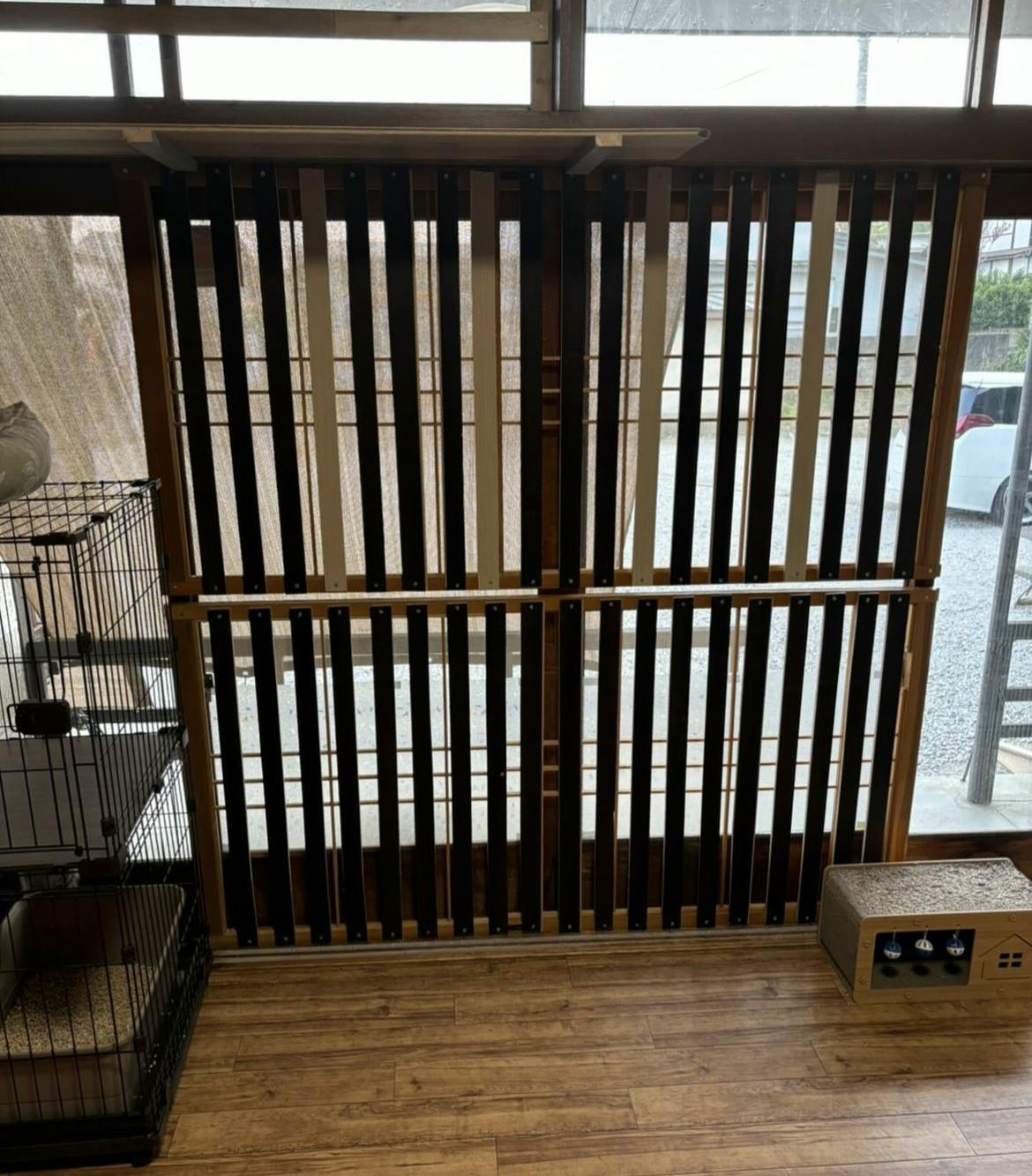 その他各所の脱走防止対策、キャットタワーの作製、一つの部屋を二部屋として使えるように仕切るなど、様々なことを行いました。