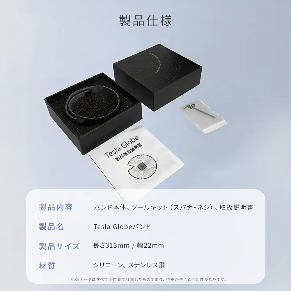 アメリカやヨロッパ、 東南アジアではこちらの製品や、 類似品に大きな反響があり、 つけて1ヶ月ほどで良い影響があったと体験談も多く寄せられています。 実際に弊社代表が1ヶ 月使用し、 こちらのTesla Globeエネルギーバンドを気に入り、 広めたいと考えたことがきっかけです。