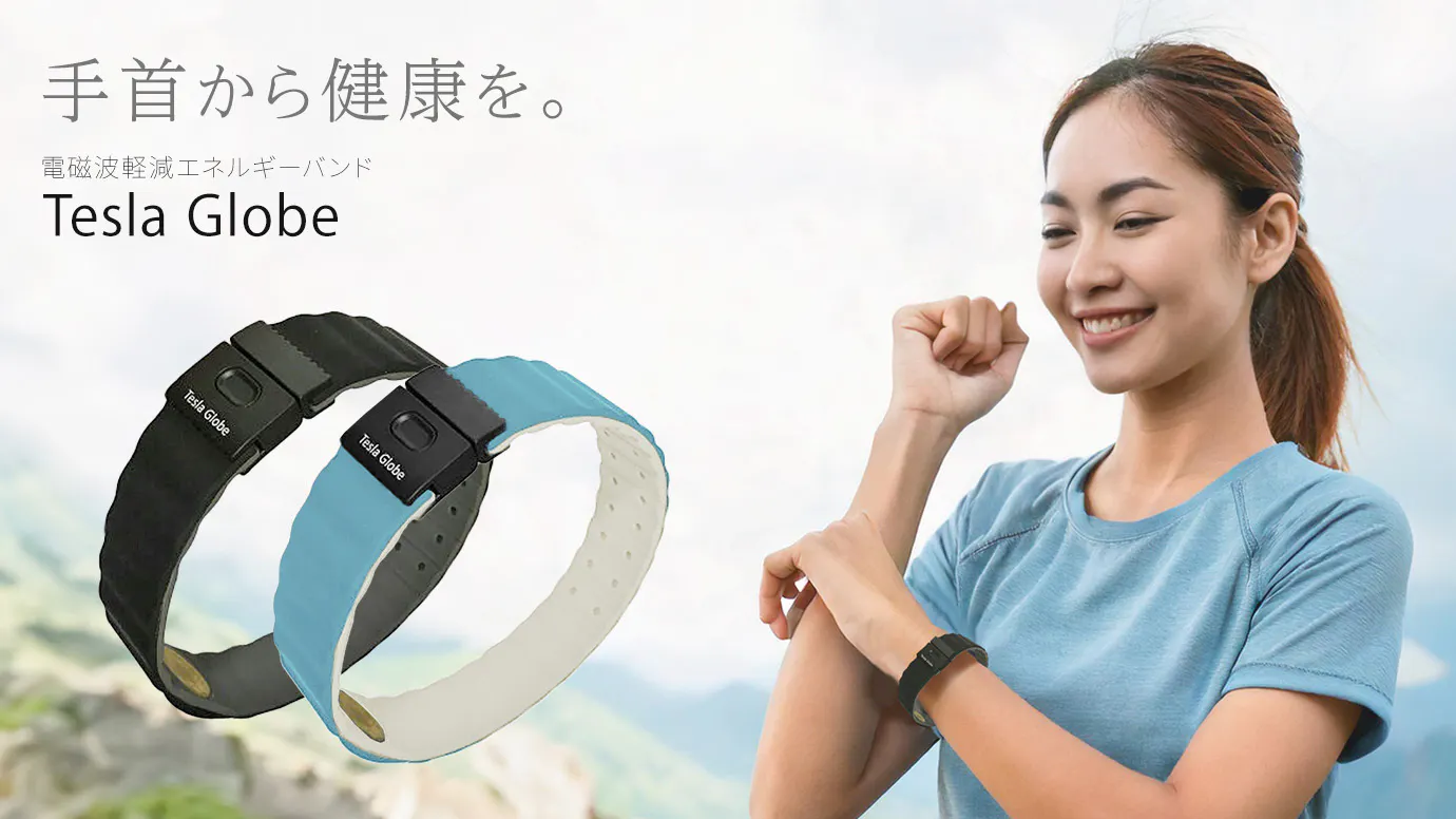 私たちは、「電磁波ケア」をもっと手軽に、誰でもかんたんにできるような製品を開発しました。それが今回ご紹介する「電磁波軽減エネルギーバンド Tesla Globe」です。