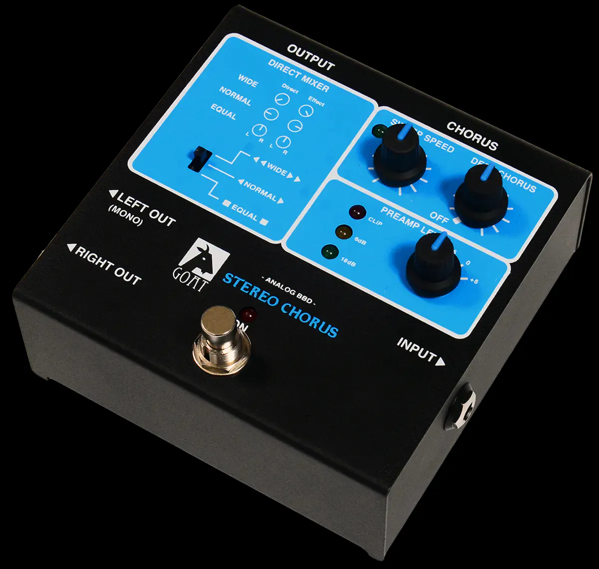 アナログBBD搭載のコーラスです。甘く柔らかいサウンドで、ディストーションの効いたギターとの相性も抜群です。