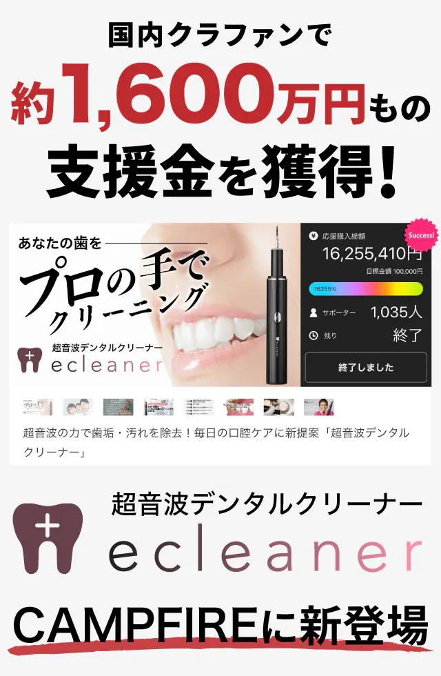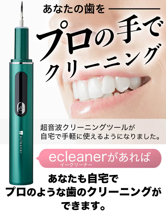 超音波デンタルクリーナー「ecleaner(イークリーナー)」プロジェクト実行者NEOS Trading松尾と申します。私は元々とても歯並びが悪く、長年歯の問題に悩まされていました。歯磨きをしっかりしているつもりでも、どうしても磨き残しがあったりして、自宅でできる何か効果的な方法はないかと探し求めていました。そんな時に出会ったのが「ecleaner(イークリーナー)」です。使ってみると驚くほどの効果を発揮し、通常のブラッシングでは落とせない汚れまでキレイに!超音波の力を自宅で体感できる画期的な製品です。