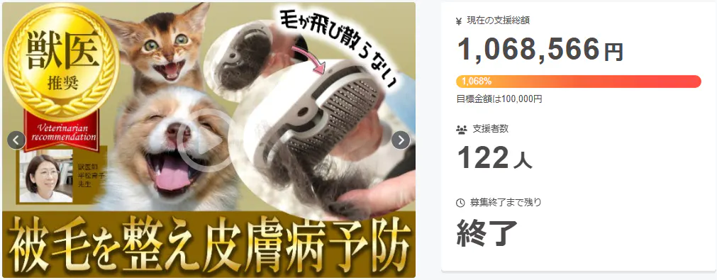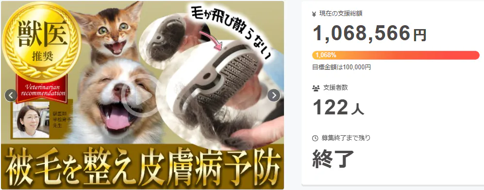 A: 支援金は、製品の製造、品質管理、配送、マーケティング活動などに使用されます。皆さまからのご支援で、より多くのペットと飼い主様に喜ばれる製品を届けます。