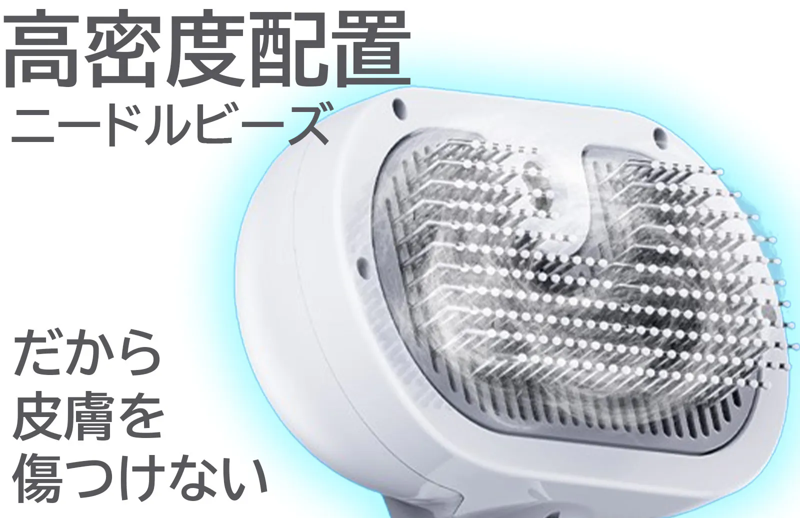 この140°の角度は非常に重要で通常のまっすぐのブラシだと力がダイレクトに入りすぎて、皮膚にダメージを与え皮膚トラブルが起こり、皮膚病を巻き起こすことも少なくありません。