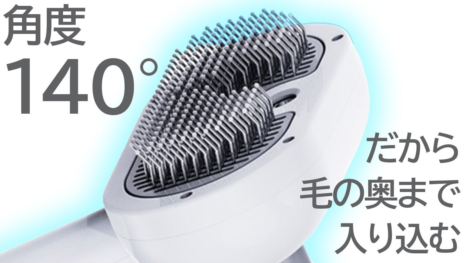 この140°の角度は非常に重要で通常のまっすぐのブラシだと力がダイレクトに入りすぎて、皮膚にダメージを与え皮膚トラブルが起こり、皮膚病を巻き起こすことも少なくありません。