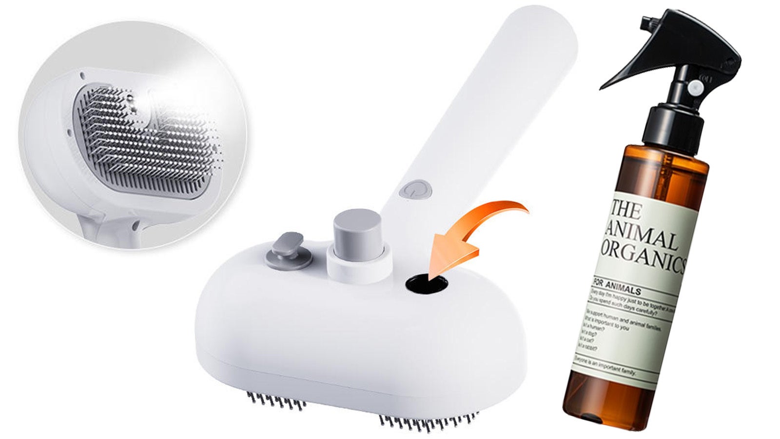 消臭 除菌 毛玉ほぐし 静電気防止 ブラッシングスプレーTHE ANIMAL ORGANICSのグルーミングスプレーをより有効に使っていただくことで多くの皆様のお悩みを解消できるのではないかと思いモイスチャー電気ブラシの開発に至りました。