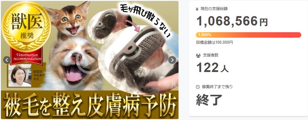 A: 支援金は、製品の製造、品質管理、配送、マーケティング活動などに使用されます。皆さまからのご支援で、より多くのペットと飼い主様に喜ばれる製品を届けます。