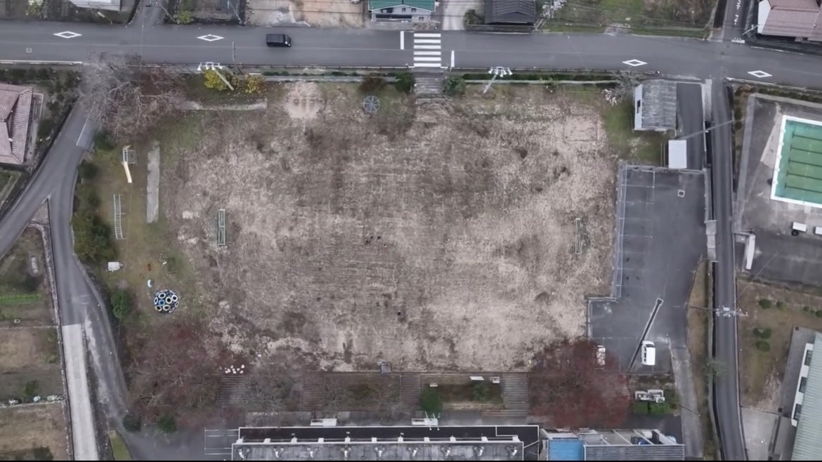 会場となる上殿小学校を上空から撮影