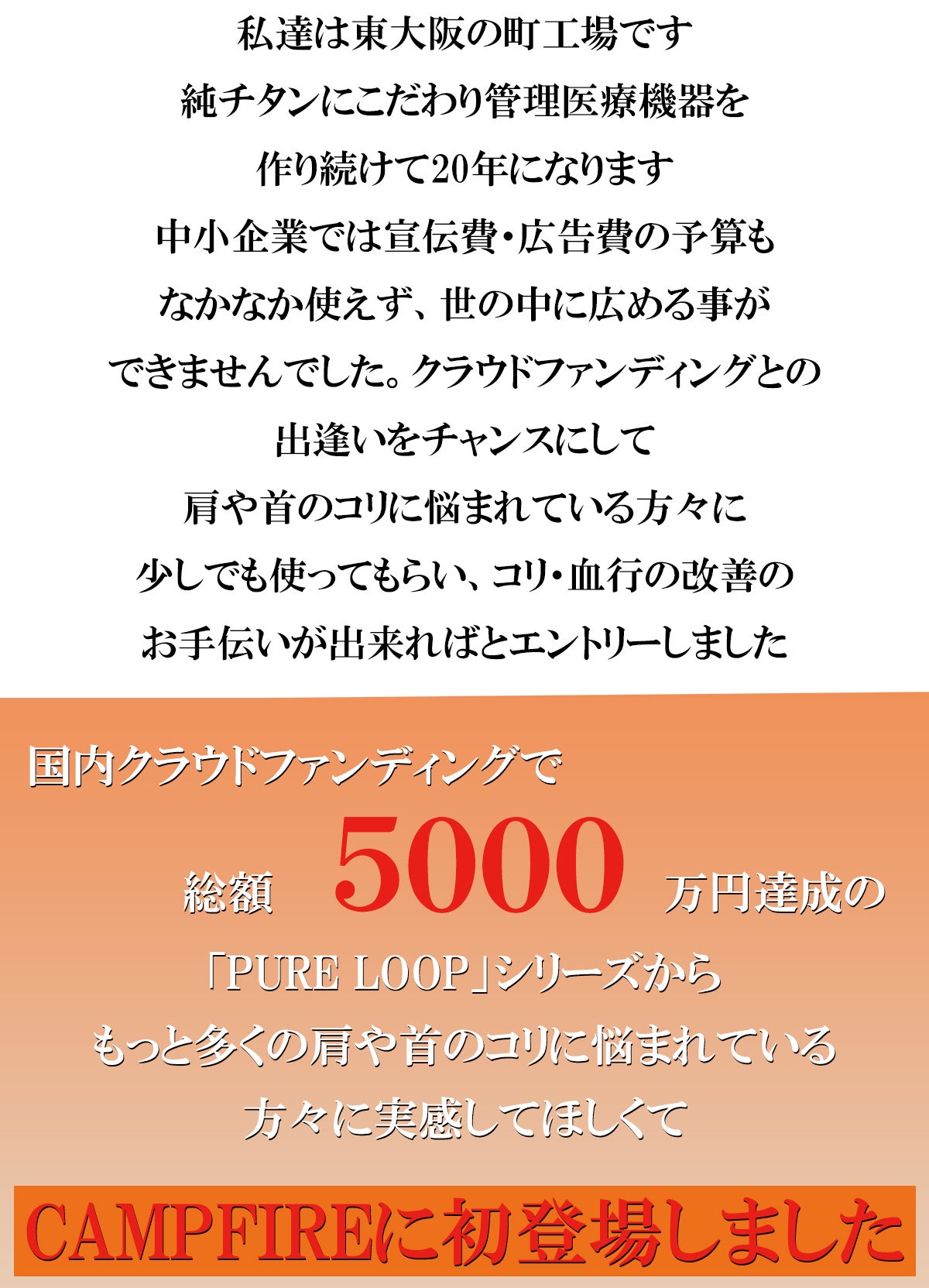 2026/01/22 10:39皆様お世話になっております。この度、たくさんの再販してほしいとの声をいただき純チタン磁気ネックレスPURE LOOPリングタイプのアンコール開催が決定しました!前回のプロジェクトで見逃していた方、購入を忘れていた方などもう一度お得に購入できるチャンスです。ご興味のある方は宜しくお願いします。詳しくはこちらhttps://camp-fire.jp/projects/912770/preview?token=2w4yobsq&utm_campaign=cp_po_share_c_msg_projects_show もっと見る