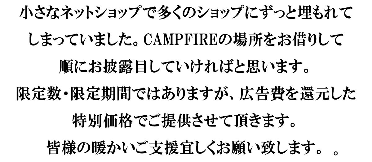 ご支援の性質上、配送遅延の恐れがございます。 原則として、配送遅延に伴うご支援のキャンセルはできません。