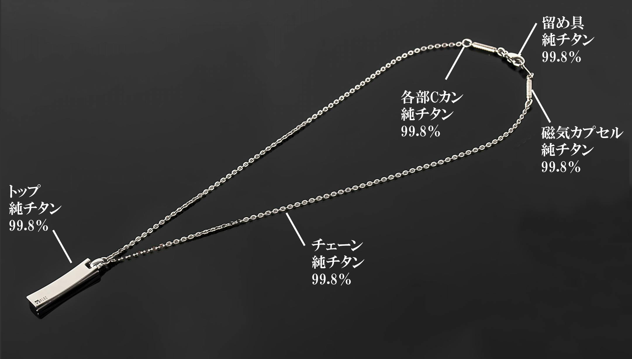 私達「ピュアループ」はトップはもちろんチェーンや磁気カプセル、留め具やその他パーツ全て純チタン99.8%で作っております