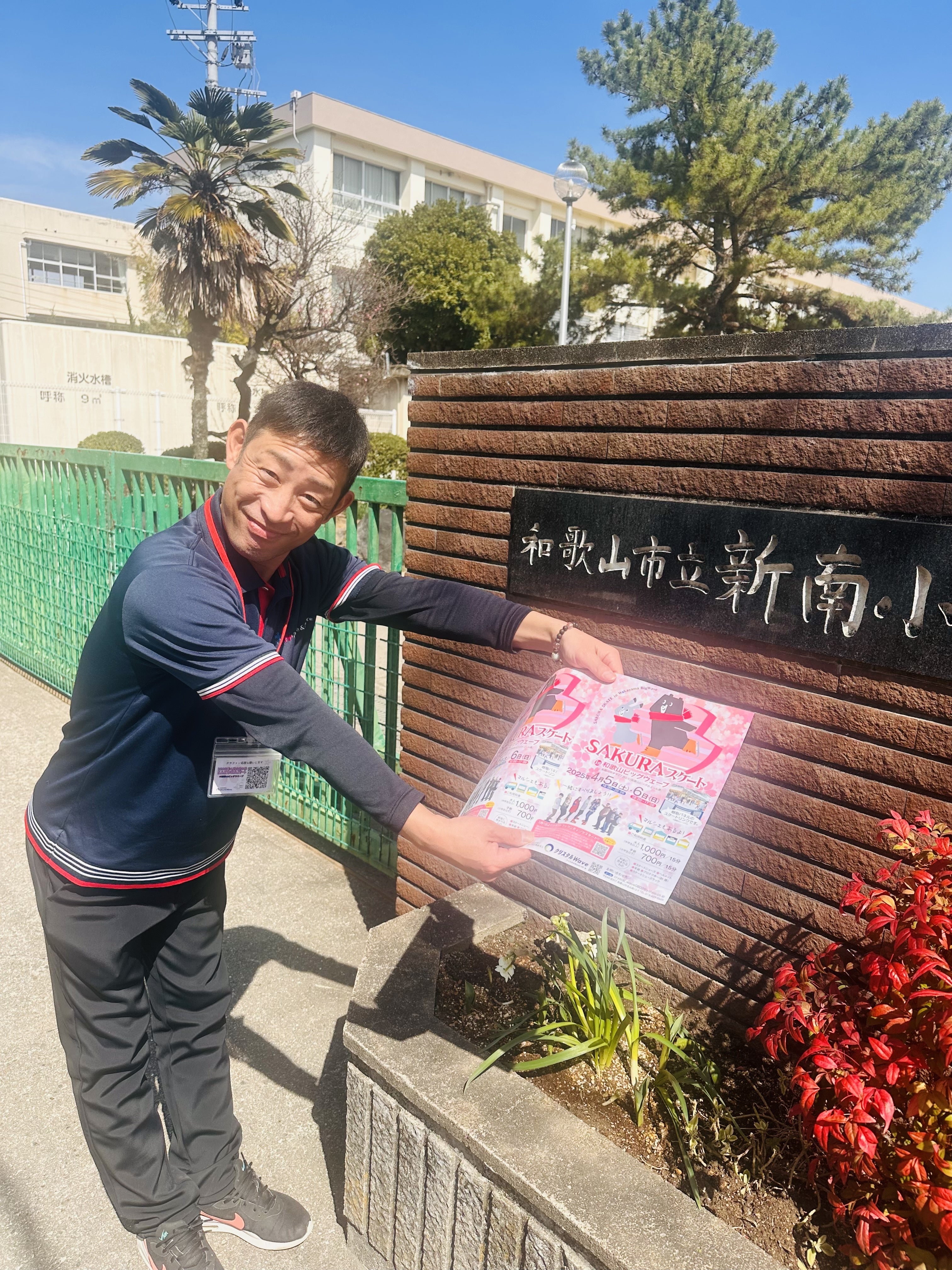 タレントスタッフの、のりちゃんと新南小学校へ無料チケットの入ったチラシを配布しに行ってきました!
