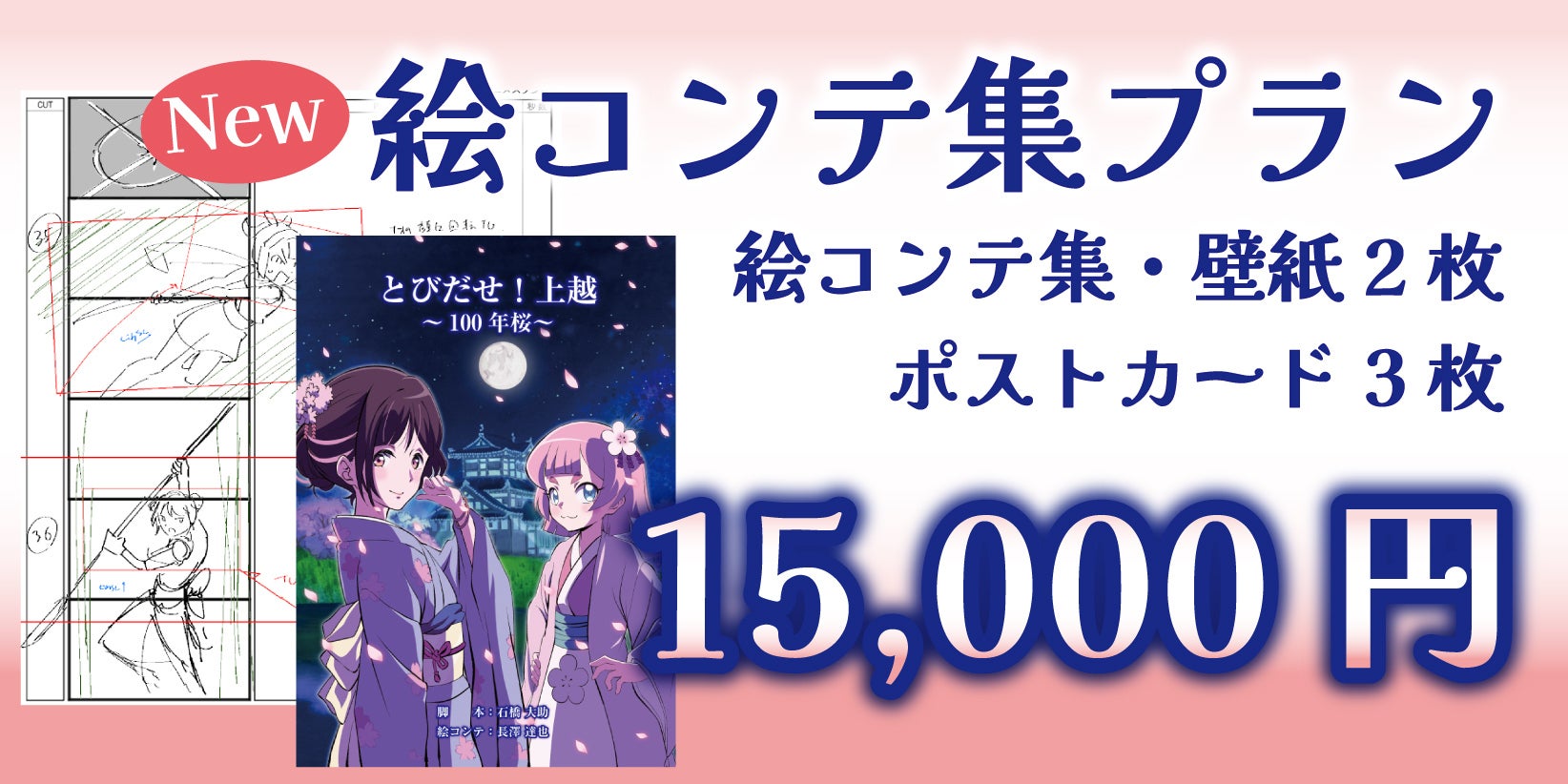 とびだせ!上越~100年桜~の絵コンテ集に、壁紙・ポストカードをセットで提供します。