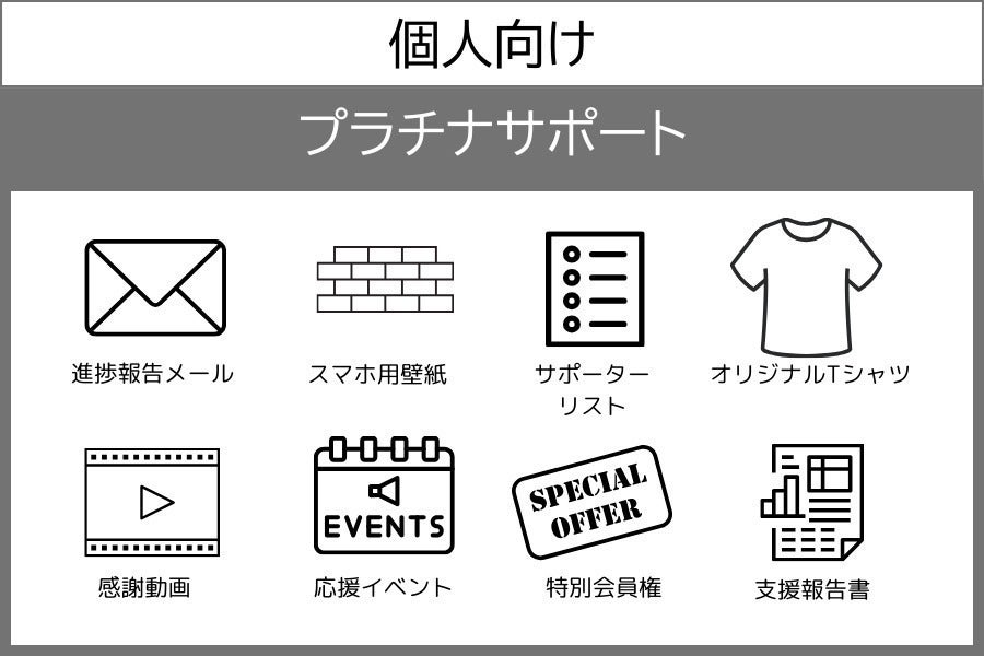 さらに、リターンには支援者のお名前を掲載する機会を含めることで、プロジェクトの一員であることを形にします。支援してくださったことがしっかりと残り、活動状況を報告する中で「自分もその一員なんだ」と感じていただける仕組みを目指しています。