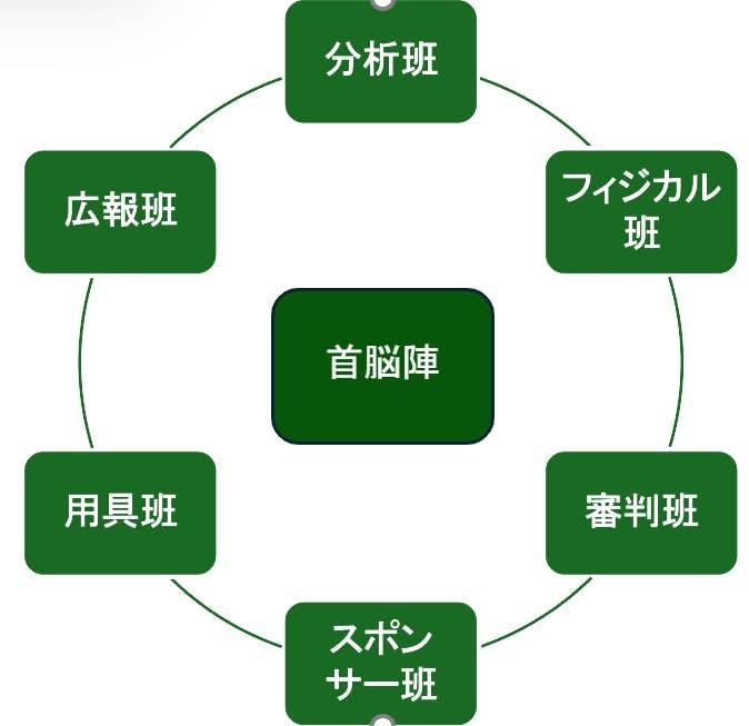東北大学学友会蹴球部の特徴は、学生主体の団体であることです。監督、コーチなどの指導者は不在で、チームにかかわる活動のすべてを学生のみで行っております。チームの運営はもちろん、練習メニューの考案や試合の分析など、その活動は多岐にわたります。現在部員は61名(プレイヤー49名、マネージャー6名、テクニカルスタッフ6名)が所属しています。多くの部員がいる中で、以下のような班活動を設け各部員が班に属して、すべての部員が責任ある仕事を果たしています。