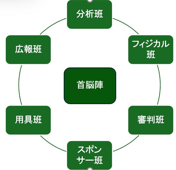 東北大学学友会蹴球部の特徴は、学生主体の団体であることです。監督、コーチなどの指導者は不在で、チームにかかわる活動のすべてを学生のみで行っております。チームの運営はもちろん、練習メニューの考案や試合の分析など、その活動は多岐にわたります。現在部員は61名(プレイヤー49名、マネージャー6名、テクニカルスタッフ6名)が所属しています。多くの部員がいる中で、以下のような班活動を設け各部員が班に属して、すべての部員が責任ある仕事を果たしています。
