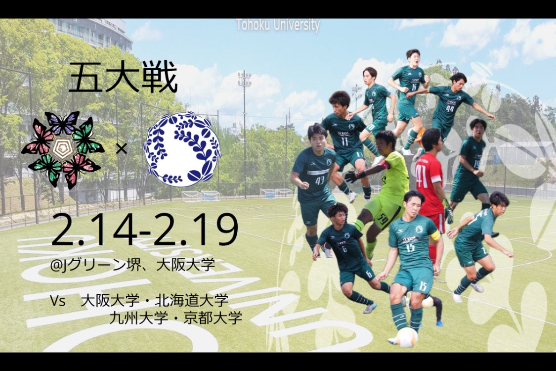 このたび、2025年2月14日から2月19日にかけて、大阪のJ-GREEN堺にて北海道大学、東北大学、京都大学、大阪大学、九州大学の5大学が集まり、「五大戦」という新たなサッカー大会を開催する運びとなりました!