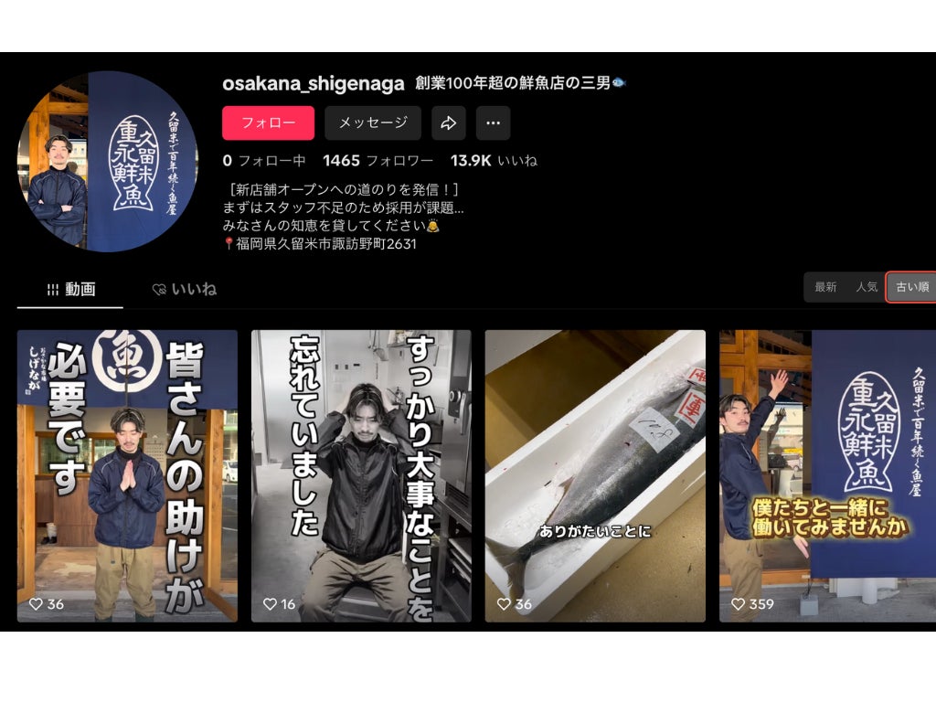 TikTokでは、久留米鮮魚市場の新店舗を中心に、お魚クイズなど楽しいコンテンツを発信しています。