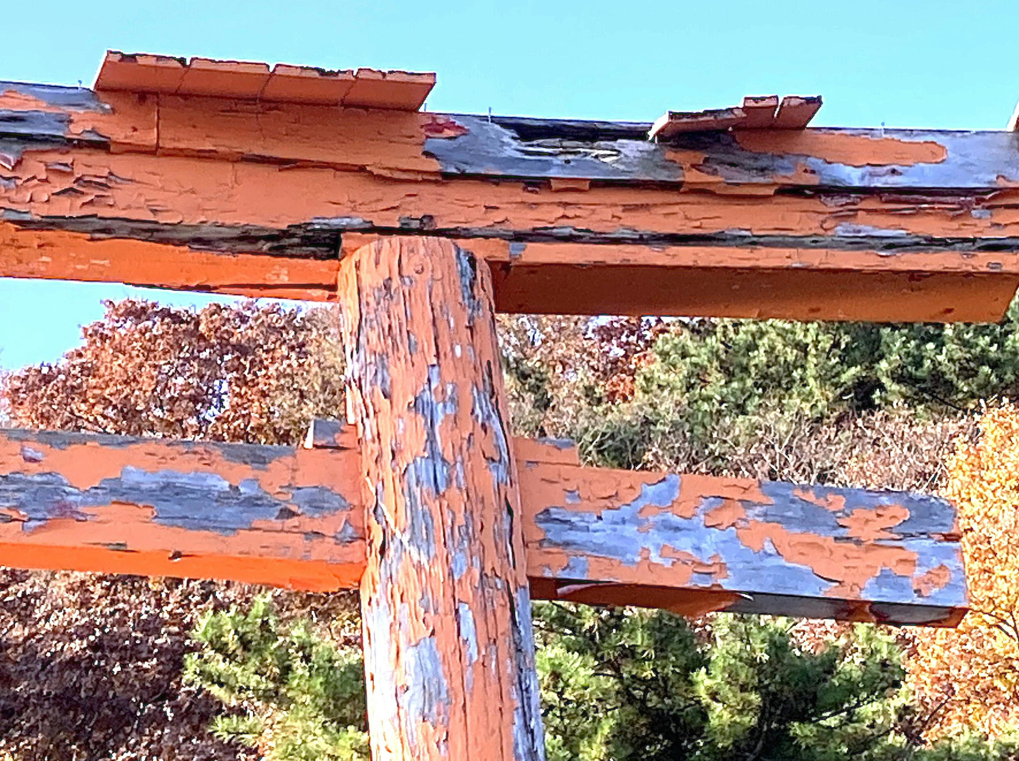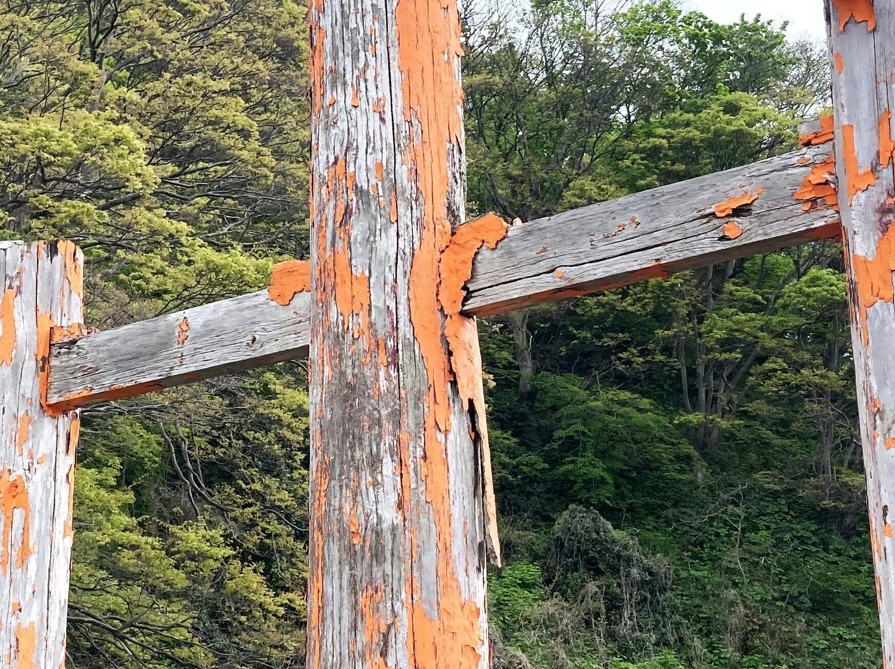 写真が示すとおり、大鳥居の劣化は年々進行し、現在は構造そのものに深刻な影響が及んでいます。