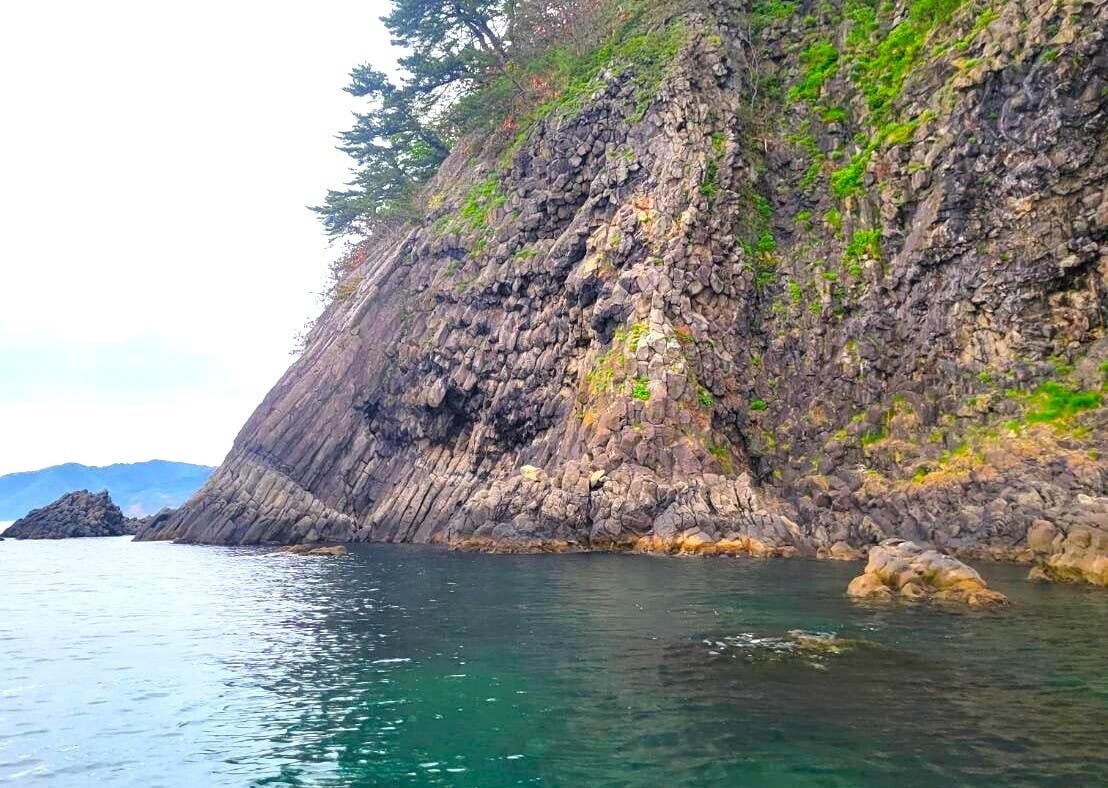湯ノ島は、600〜700万年前の火山活動によって生まれた島です。溶岩の冷却による柱状節理が形成され、火の神・水の神が融合する聖地として古くから信仰されてきました。人が渡った当初、島の海中からお湯が湧き出ていたことから、その名があります。
