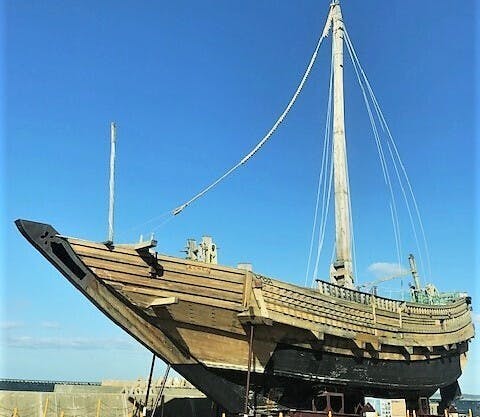 江戸時代、津軽海峡を行き交った北前船の姿を今に伝えています(野辺地町常夜灯公園)