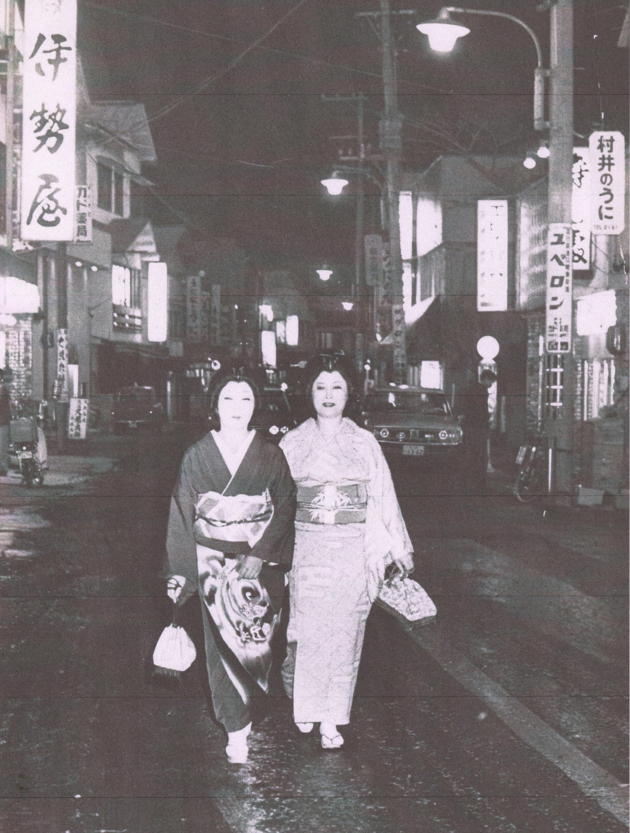 温泉街を歩く芸者たち。100名を超す芸者を擁した花街の時代もありました