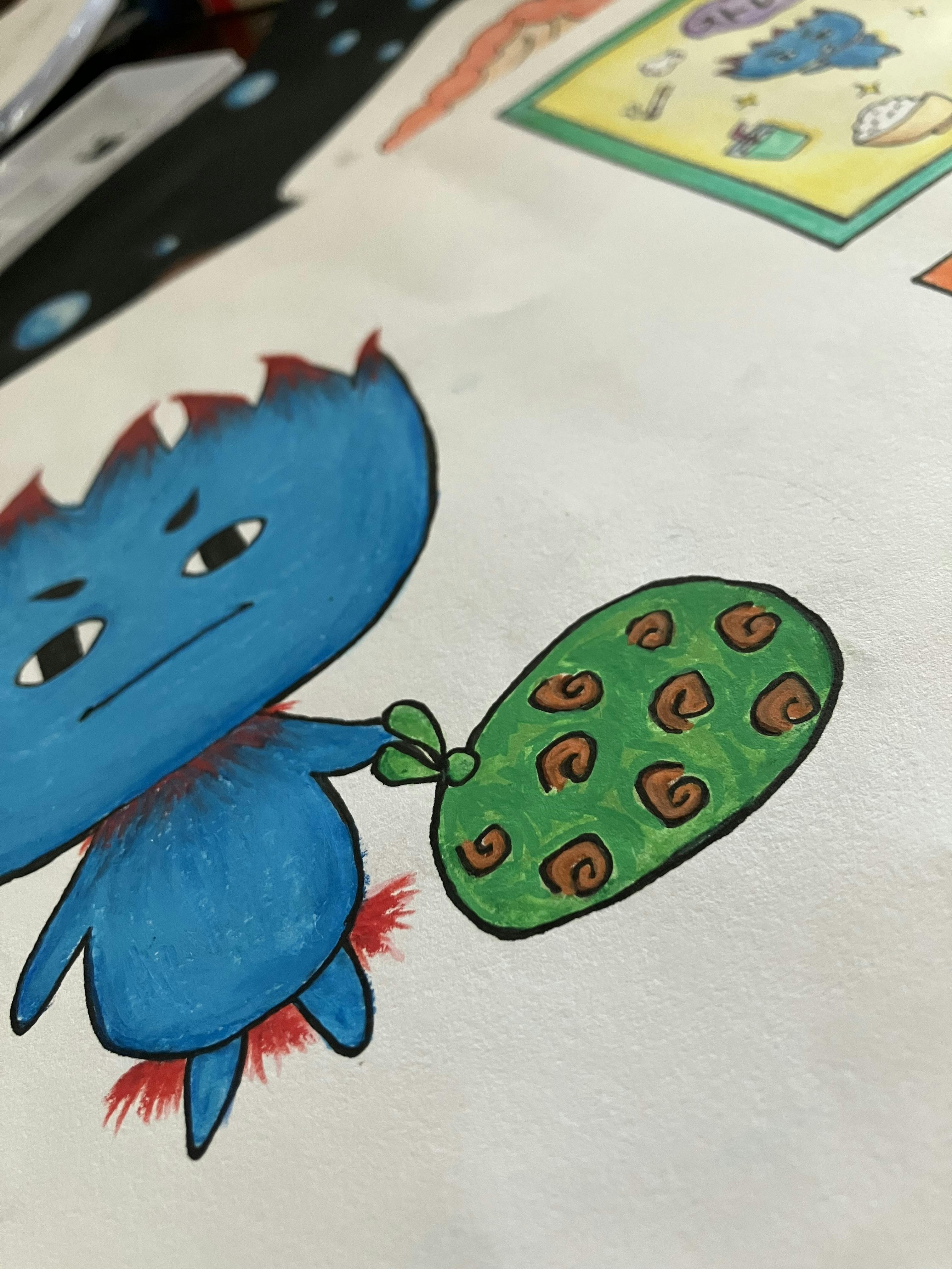 クレヨン アクリルペン 水彩絵の具 水性ペン 色鉛筆 いろんな画材で描いていて この作業が 1番楽しい♪