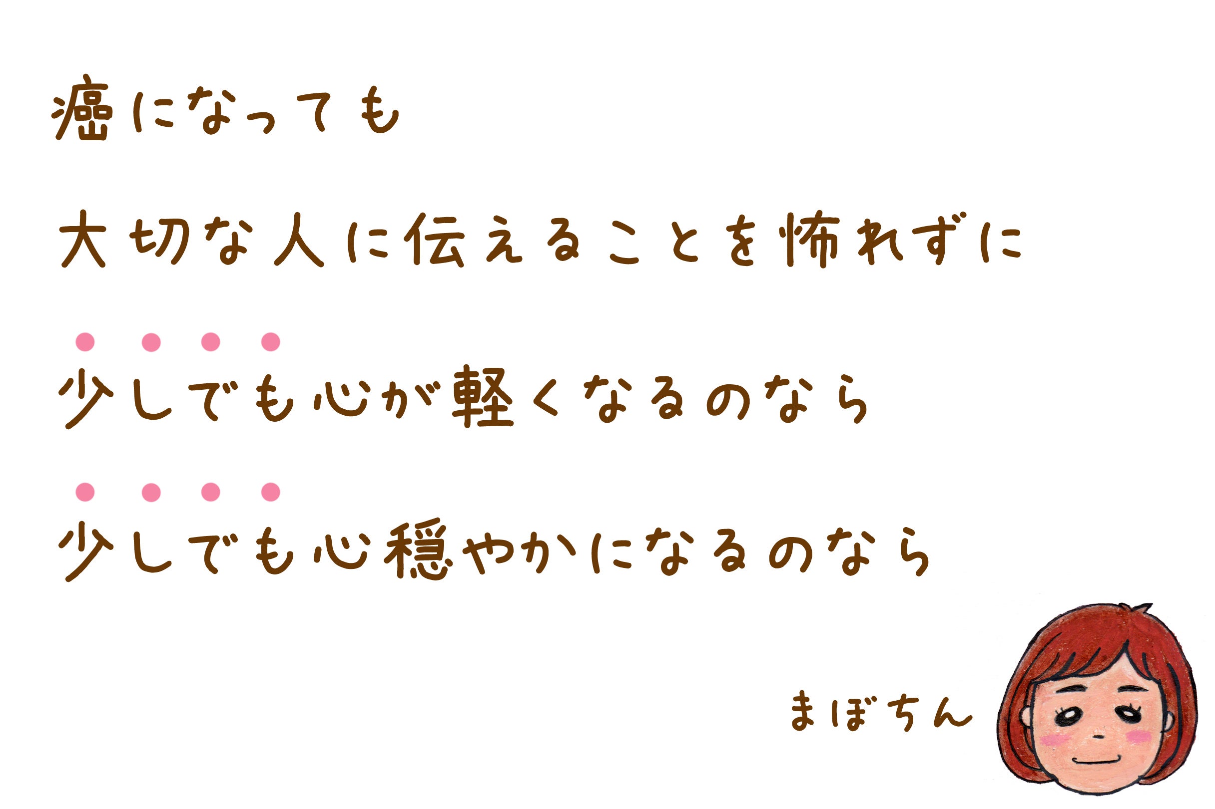 このイメージが子供の頃から自然と身についていたら、癌を正しく恐れる事ができるかもしれない。そして、我が子に自分の病気の事を伝えるという大きな大きな悩みからも少しだけ、解放されるかもしれない。