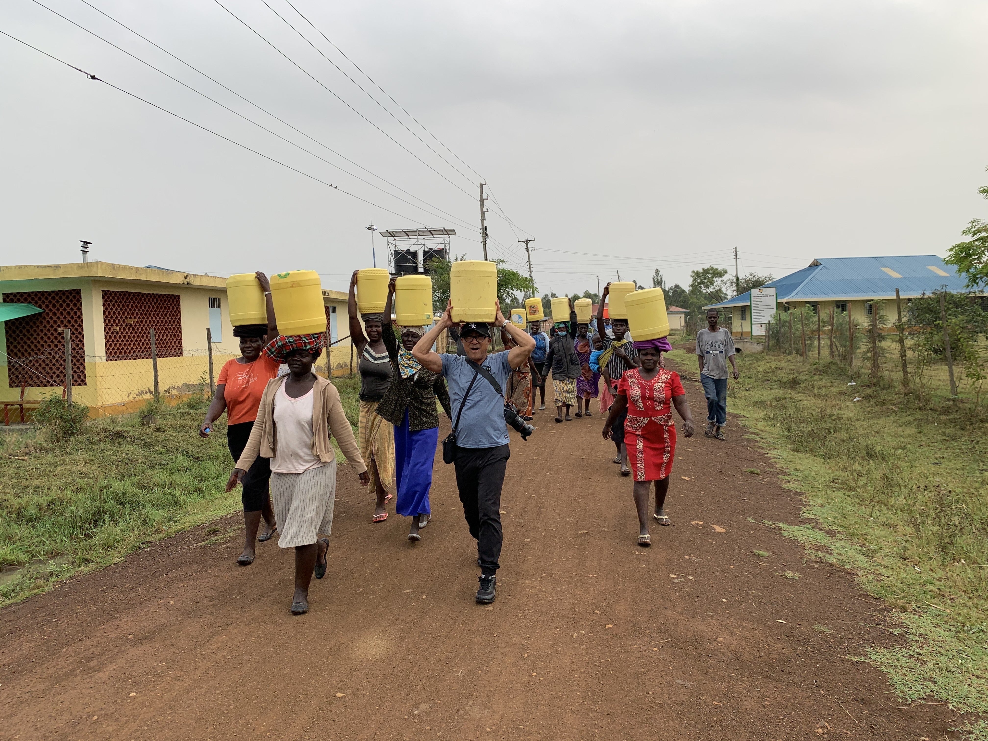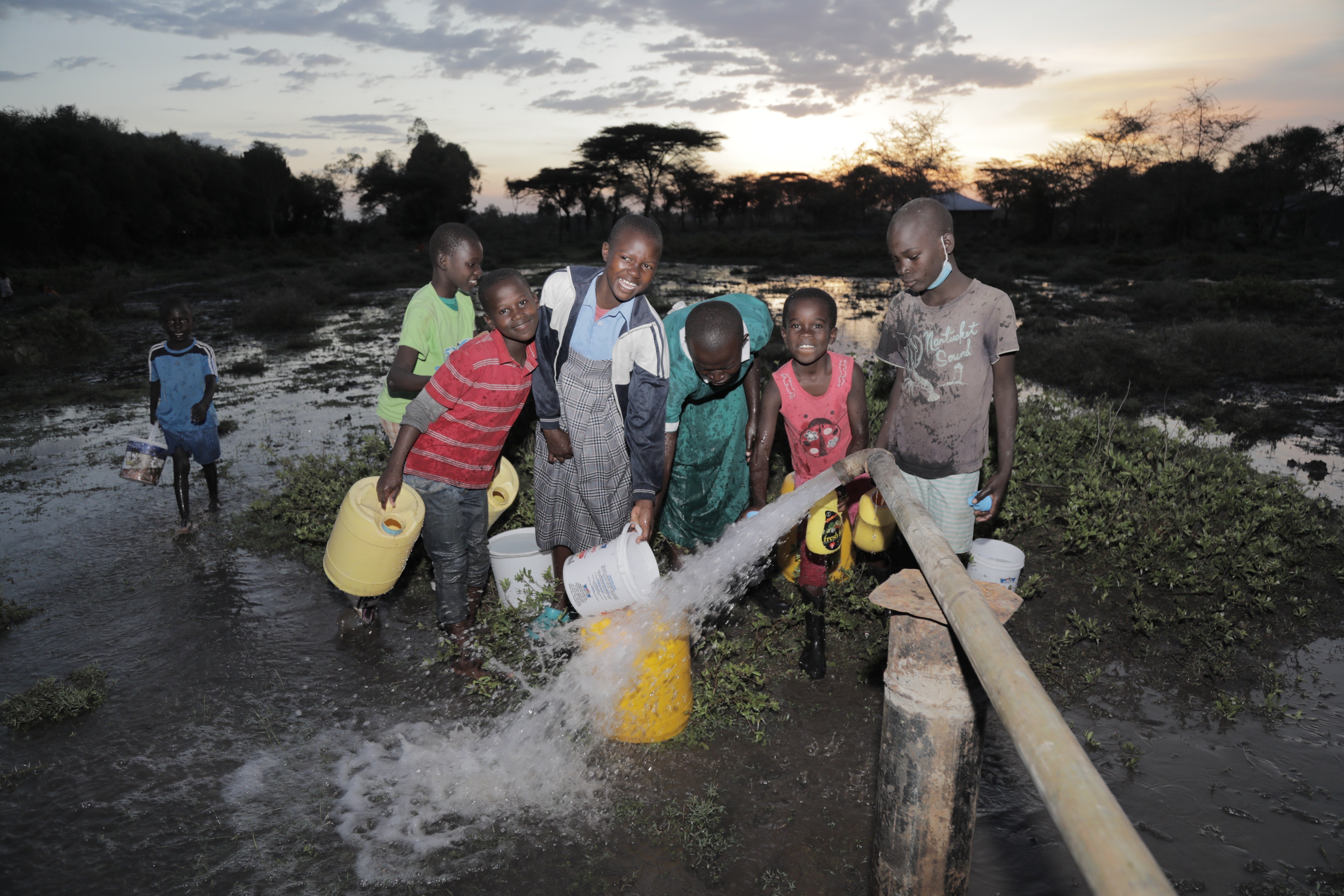 待ちに待った地下水の組み上げを全身で喜ぶカクエマ村の子ども達